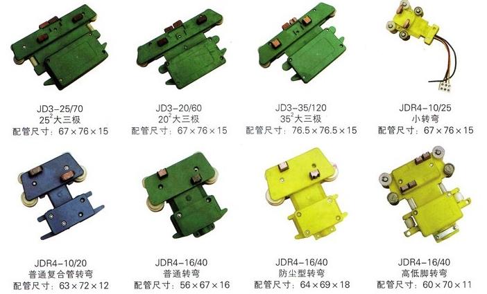 JD系列滑觸線集電器是滑線系統(tǒng)中最主要的部件之一。集電器是滑觸線系統(tǒng)中集電側(cè)拾取電能的主要裝置,滑觸線集電器通過(guò)集電刷與導(dǎo)軌的滑動(dòng)接觸,將電能直接傳導(dǎo)至用電器,從而實(shí)現(xiàn)系統(tǒng)的移動(dòng)供電。集電器由機(jī)械結(jié)構(gòu)的張力裝置和直接與導(dǎo)軌滑動(dòng)接觸的集電刷兩部分組成。